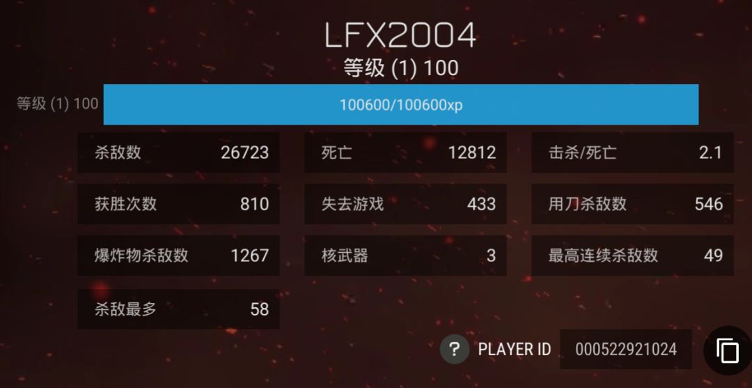 我还是决定把我的信息图片补出来了,有点菜,甚至技能一般都不带核弹。但我保证我绝不开挂(这是过去,现在,将来都会坚持的)。还有,最近我kd上来了,偶尔对面有些人,故意以OTHER为理由试图踢我出去!这太不公平了!外挂不踢,踢我这个菜鸡玩家,怕是没见过一局2核的大佬。