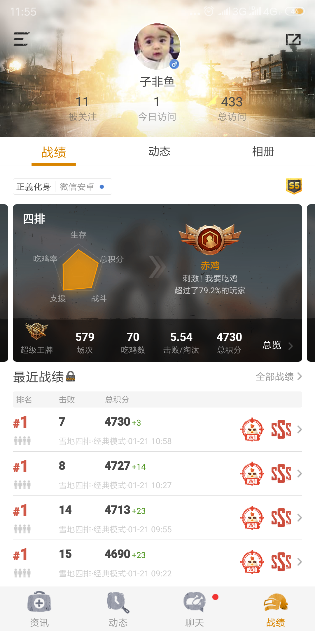 热烈庆祝四连鸡,吃鸡挂件加40%吃鸡率!