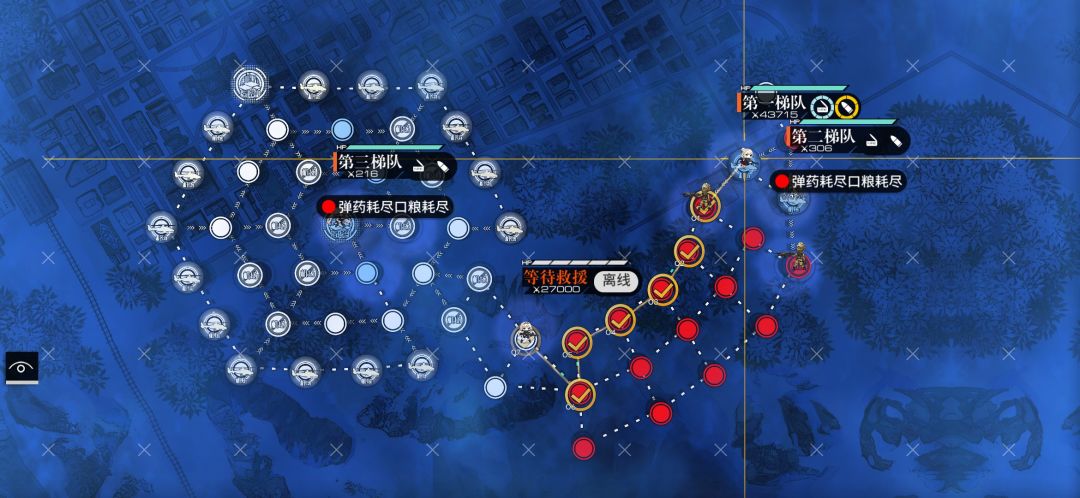 第二回合,指挥部狗粮队向左移动1格,打捞队与AN换位后救援,移至指挥部手动回收人质