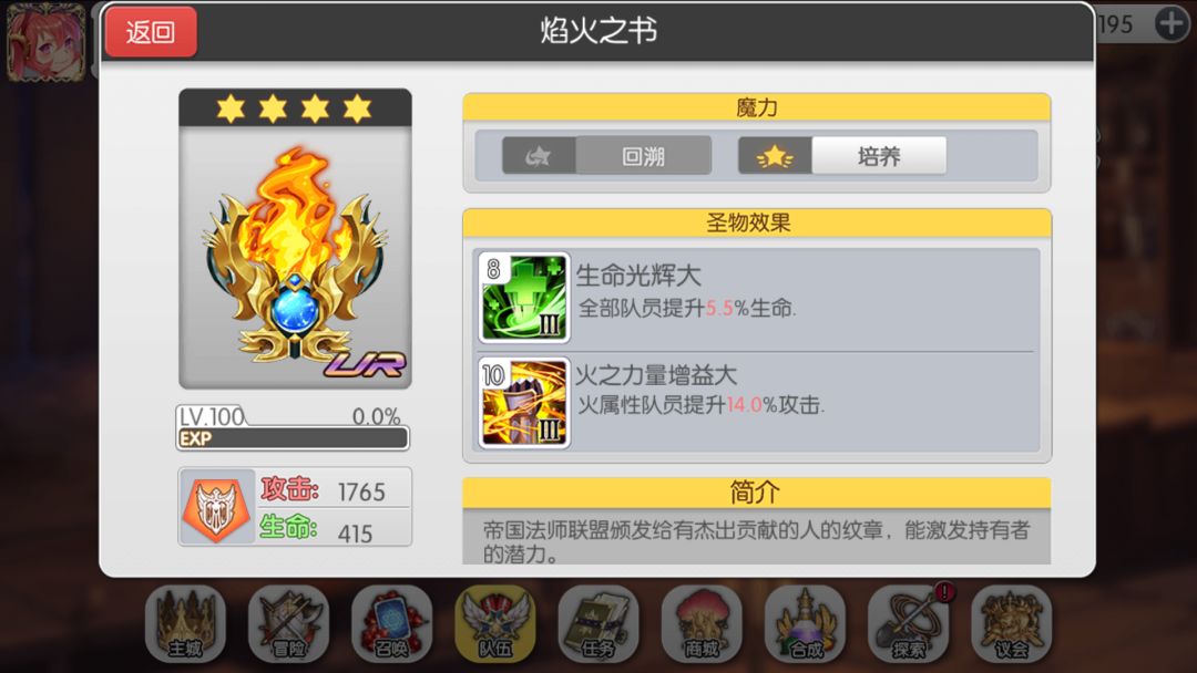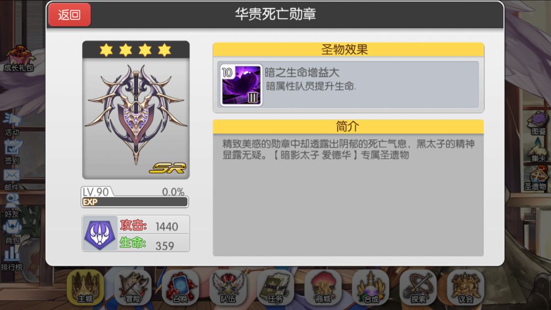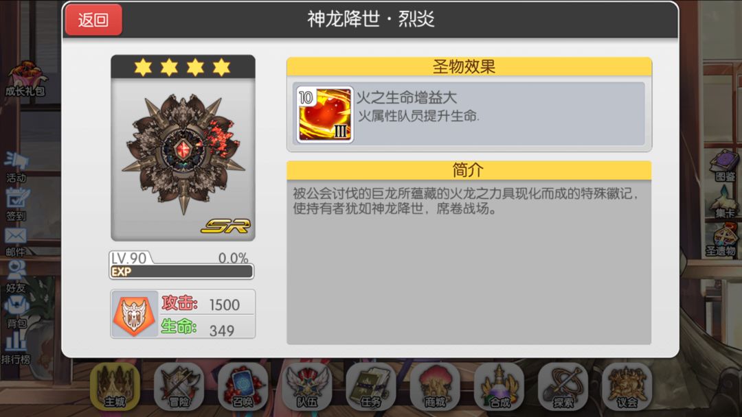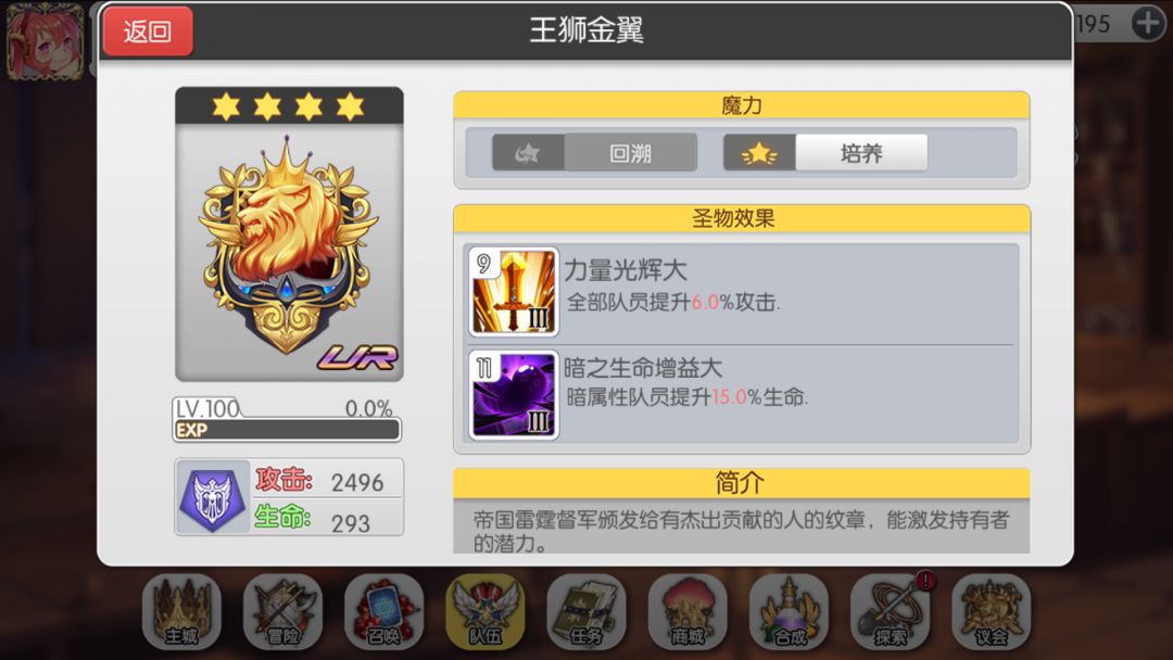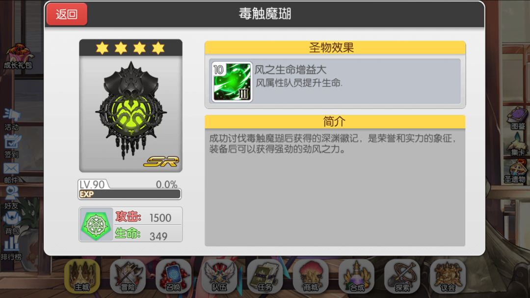 玩家如果想获得第一个UR级圣物,可以选择集卡里获得的暗属性生命增益的公会纹章,但是该公会纹章的晋升UR级的材料是在委托任务第五话的极限难度里获取,对于战力的要求比较高,大家可以退而求其次,选择风属性生命增益的公会纹章,大家可能会疑惑,为什么推荐大家选择这两个,而不是大家主属性队的公会纹章。