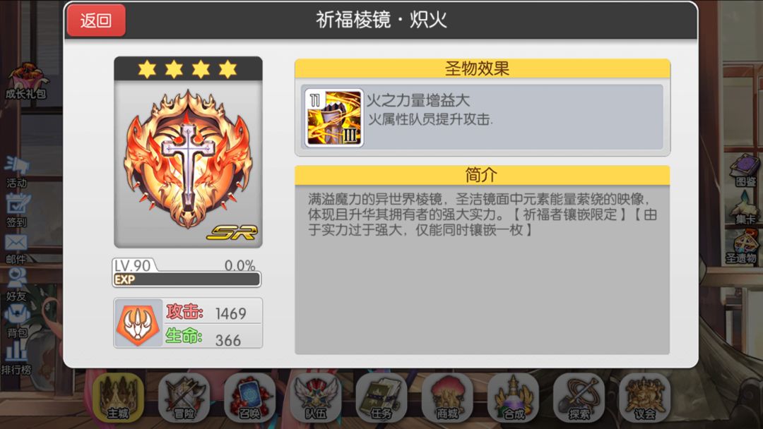 生命增益的SR圣物等级划分(个人认为):90级提供攻击力1600以下不及格,1600到1800及格,1800到2000为良,2000以上为优。