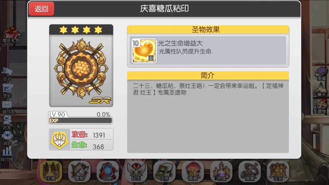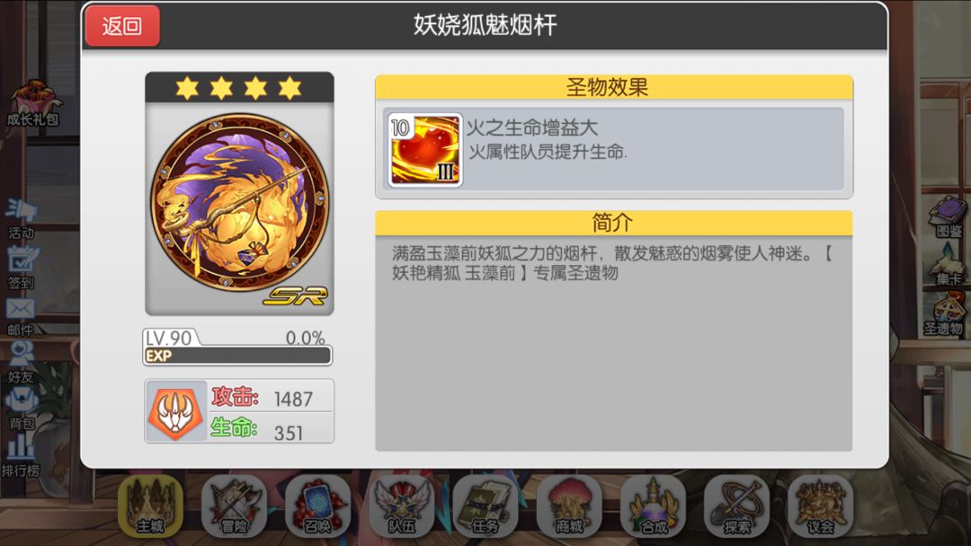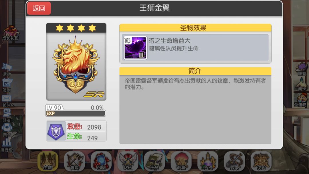 方法三:在获得UR级伙伴时,可以在游戏界面右侧的圣遗物里领取对应的SR级圣物。