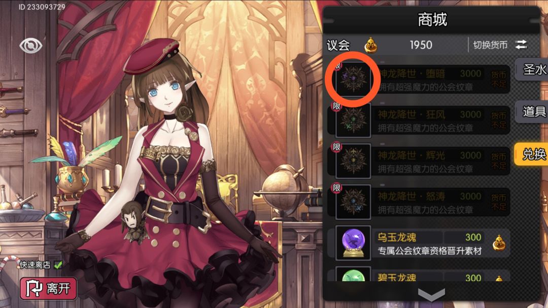 议会商城兑换的公会纹章的晋升材料也是在议会商城里兑换,不过在晋升时还需要高级魔能集合以及委托任务里大师难度才能刷出的对应材料。