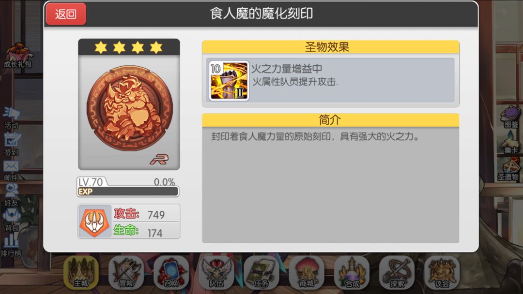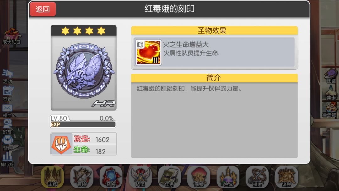 首先我们通过我在攻略开始提到的通过图鉴的圣物页面来查看各类圣物达到满级时所提供的攻击力和生命值。