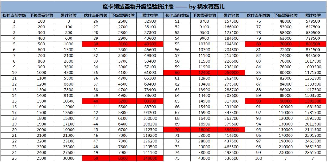 圣物升级经验统计图(来自于祸水薇薇儿大佬)