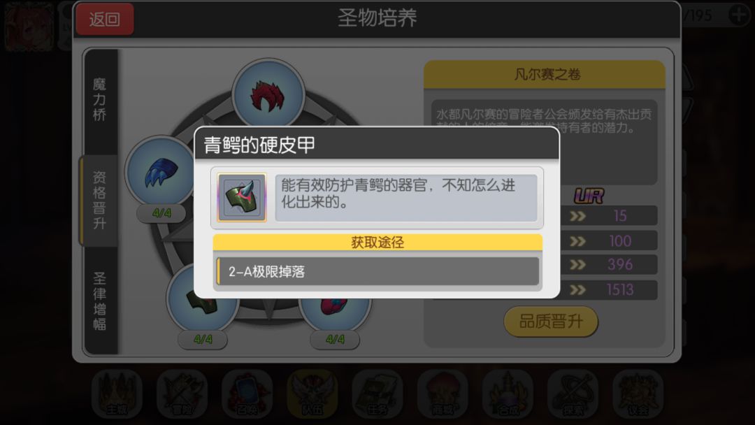 R级圣物和HR圣物的晋升材料在获取的那一话那一区的简单、困难以及挑战难度可以刷出对应材料;