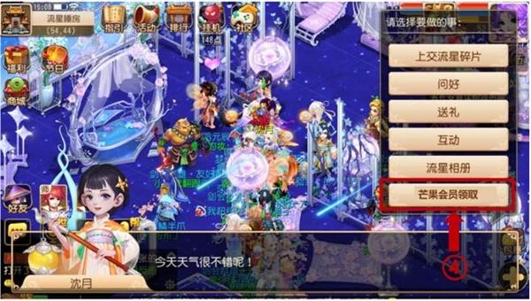 渠道服务器玩家,则需登陆游戏→打开包裹→点击洛阳风月记→找到沈月NPC→选择“芒果TV会员”领取。
