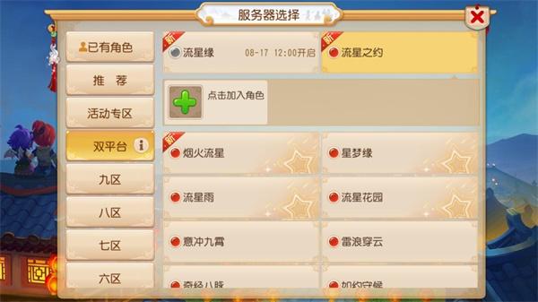 渠道服务器:【流星之城】、【流星夜曲】、【流光飞舞】、【流星愿】、【星之境】。