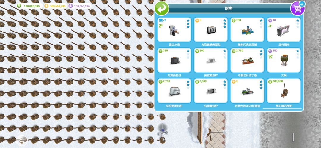 新建一块空白土地,买厨房最后一页的魔法拖把,一把八十多万,游戏里见到最贵的家具,可以➕五万左右的经验。
