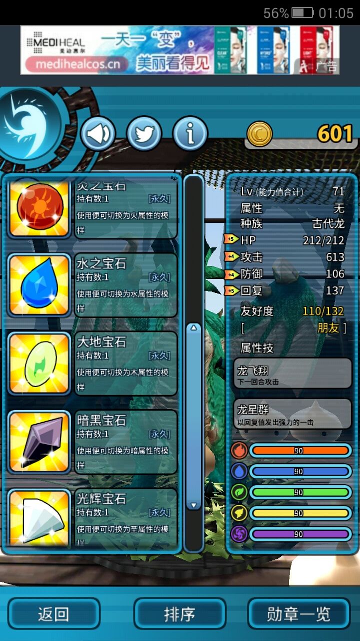龙的形态有水火草光暗无,还有一种好像要什么大封印我还没打出来,每个属性到最高阶级是会送一个属性转换石,建议后期刷钱可以用硬币刷,