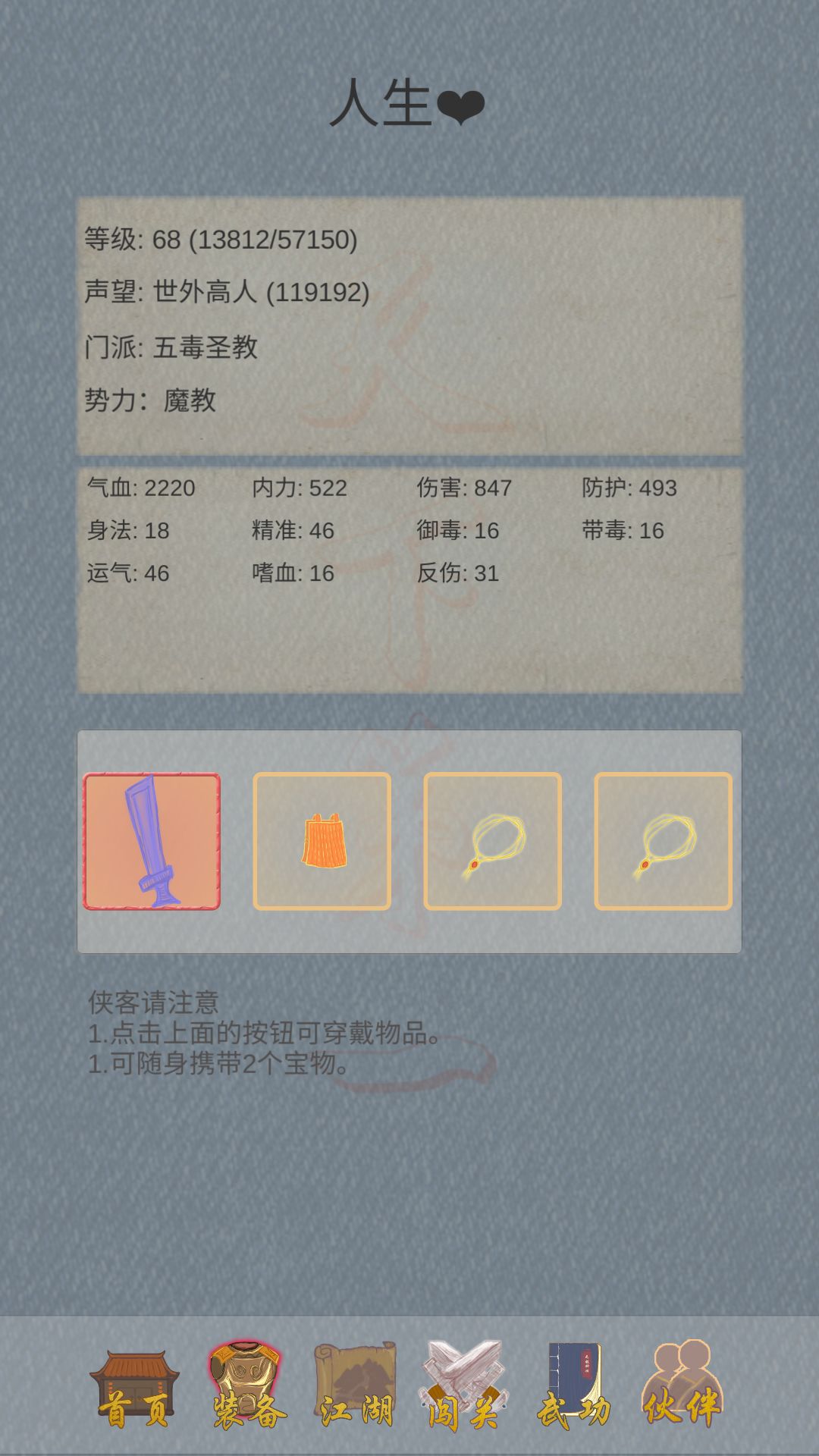 玩了一晚上终于通关了,写下技巧:前期人物招到手可得先手出招躺赢一波:万福镇,找到‘小白’,庙会大街’,找到‘花灯铺子’,猜完‘灯谜’拿到‘花灯’去戏台对话,‘翠儿’入队,99瓶美酒去东海的蓝冰岛,找到‘辛十九’点结义,前期略强队友郑浪:买100瓶美酒,去吴兴城的‘道场山’和‘郑浪’对话,点结交,超强队友‘武媚月’:常规拿完所有东西之后过完第五章节主线,去大漠找到‘问情老人’,和他对话输入你第五章主线给八姑说的名字,拿到‘心动玫瑰’,然后去‘中原’的‘嵩山’,找到武媚月,点结交然后交出心动玫瑰,买酒辛十九5级得燃心决,去铁匠铺买铁啾撬开,打血书老祖的一把橙装,去太湖打老王的100个烧饼全吃了涨体质,去然后躺赢一波副本换装,各地图跑一下可以的不少元宝玫瑰和美酒秘籍,继续打一波主线,打不过了买玫瑰将媚娘和小白升到10级,元宝不够去有缘剧狗一波,去青城山无情关求宝得多情剑法(目测最强剑法,然后继续刷副本,得此剑法升4级基本可以刷到最后一关武器紫装,其他全换橙装,然后去那无双刀(无双刀需要声望,不然废刀一把,去皇朝打祭天护卫队刷武学值,升级落叶心法加防护,装备都卖了去老地方买豆腐加体质涨攻击,闯关“老家伙们1,用媚娘和主角刷,多让让,声望翻倍,差不多了装上无双刀打主线,主线过完去天山领悟,二狗得秘诀破空斩,可破护盾,然后过闯关,局终。