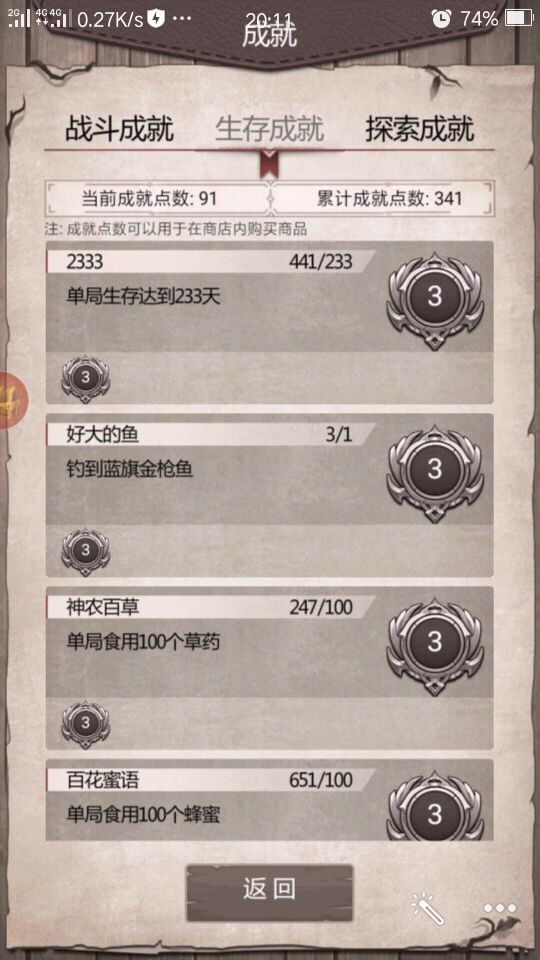 再一个像单局100草的“神农百草”,单局233天的“2333”,都木办法完成。再比如泰坦尼克的重数计算(以前14重的时候计的52/60,结果到16重也没有变化。)