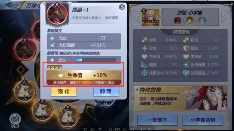 星相小宇宙为蓝色,主属性为速度,效果命中和效果抵抗等稀有属性。