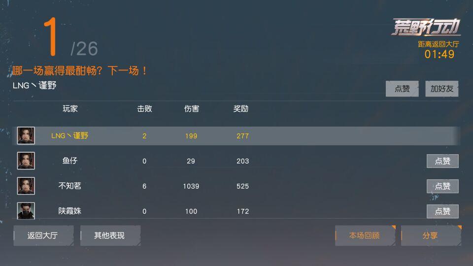 四排缺一个人,每次随即匹配都是我们三个一起,然后匹配的路人队友都会各种死。找一个吃鸡队友,完美…… 上面是今晚打的六把,吃了四把鸡,两把前十……来吧欢乐语音吃鸡 群号680876907,或者游戏内加我id:LNG丶谨野