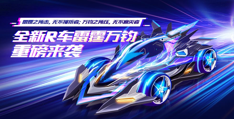 全新R车——雷霆万钧亮相全新师徒版本!独特的前轮设计,搭配轻巧的车身,紫色闪电特效下,是不断展翅的外形,而至于实力如何?赶快进游戏试试吧!