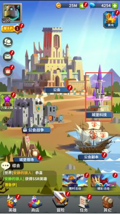 英雄科技的入口是点击大厅的“城堡科技”按钮进入。