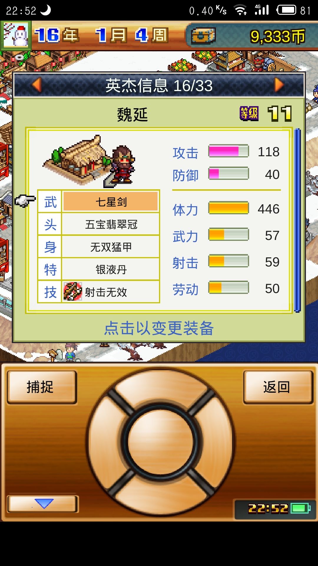 魏延,初始送的武将,一直可以用到卸甲归田。游戏里唯一一个射击无效技能,真的厉害,,后期配上神装基本不会死的。
