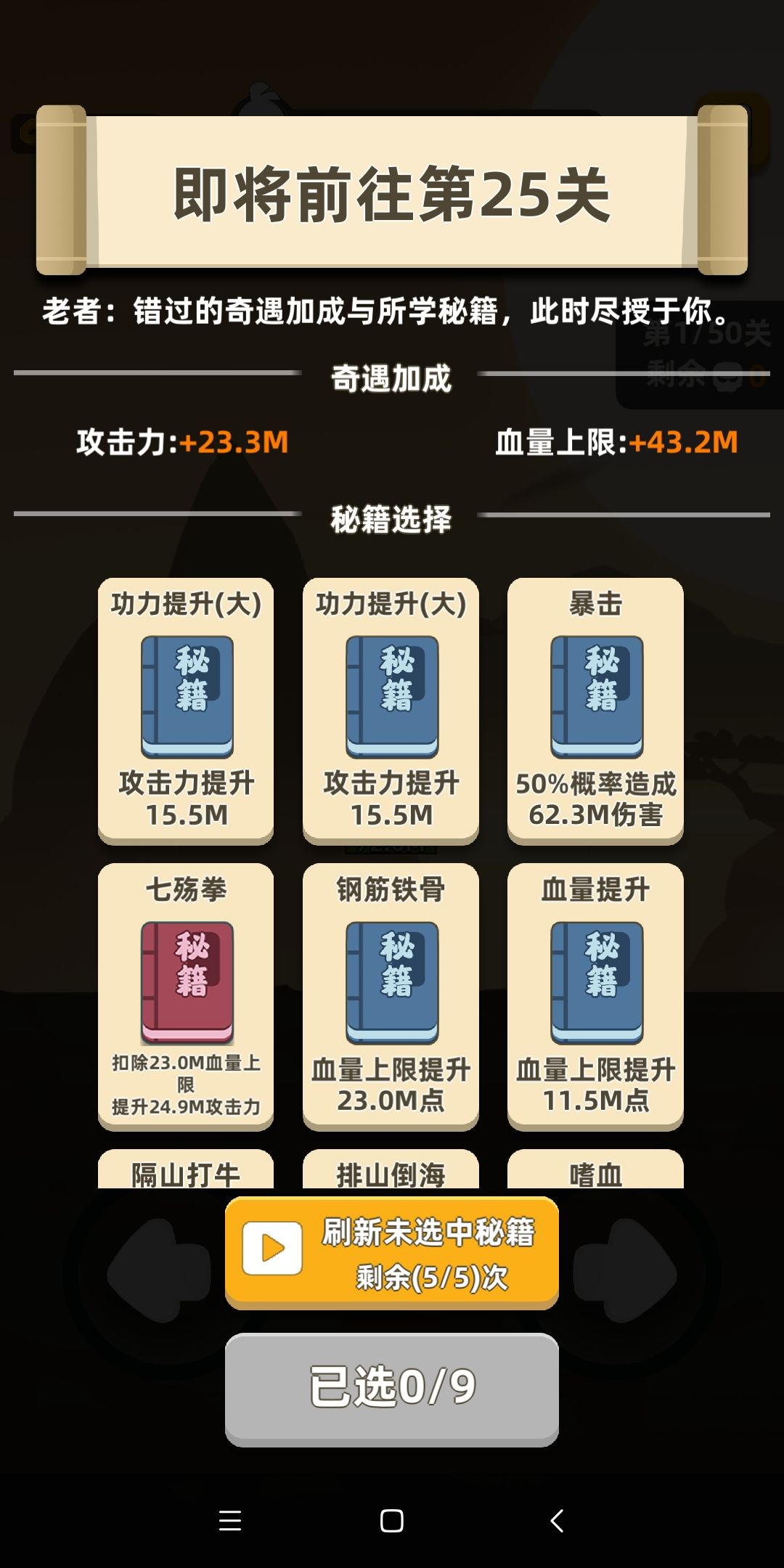 新关卡带感,就是含笑还是看不出来有什么用,屠龙刀非常爽,金箍棒没打过屠龙过了,我要这铁棒有何用。不动如山超级神技,占满三级一刀过去秒怪