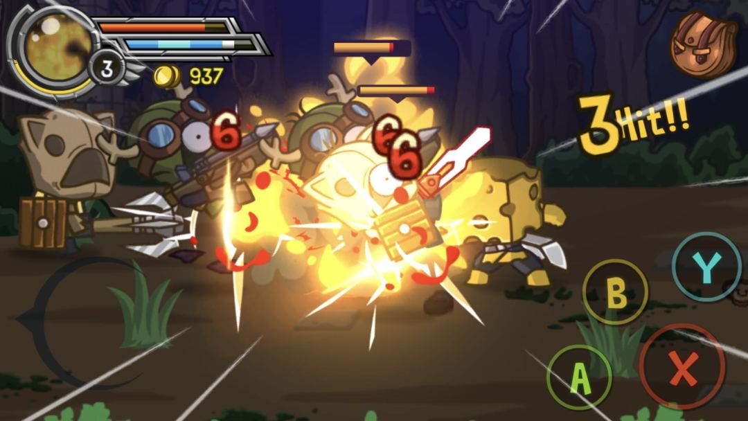 游戏的操作方式是典型的街机模式,左边虚拟摇杆控制移动,右边按键负责打出华丽的操作。X=平砍、A=跳跃、Y=魔法、B=翻滚。玩家可以有多种组合方式来打出炫酷的连击。