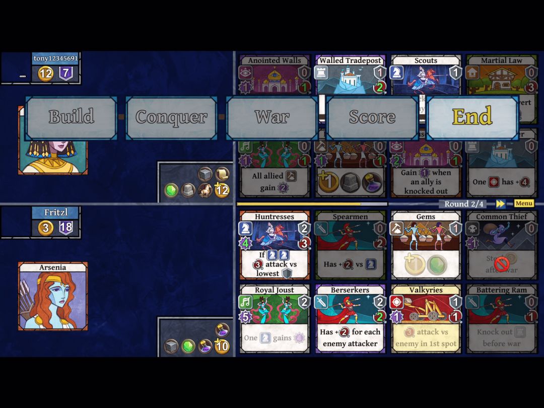 当双方都获得满八张卡片后,将进入征服阶段。