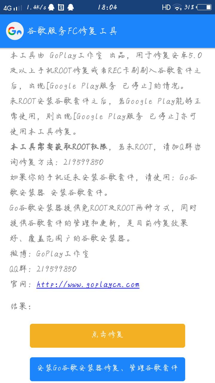 3.打开谷歌服务器.点击修复