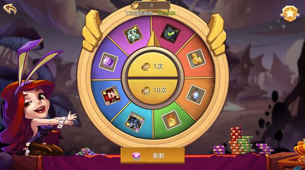 2、关于转盘:每日任务需要的那2次转盘,尽量刷新到有5星英雄了再转,实在等不到,就刷新到你主力发展的阵营四星了再转,再不行就等钱最多的时候再转。高转至于刷新出什么英雄才转看你自己需要,单转十连随意。