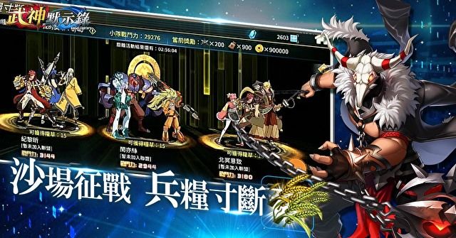 在遊戲內「挑戰」系統中的「兵糧寸斷」為每日限時玩法,於晚上 7 點至 10 點開放。透過格鬥 KO 勝利獲得武勛點,可兌換專屬於武勛商店產出的限定角色及道具;在每日活動開啟前,系統將自動分配 15 車糧草給參加活動的玩家,並隨機匹配對手,玩家可於戰鬥中依戰力搶奪,搶奪成功後,可獲得敵方糧草的一半數量,當搶奪糧草多達 50 車的玩家,將自動於活動中勝出,不能再進行掠奪。此活動玩法也很佛心地保護戰力較弱的玩家,若手中的糧草只剩下一車即不會再被掠奪;而晚上 8 點及 9 點整時,後勤部隊將加入戰局,把糧草不足的玩家自動補足至 15 車,活動結束後,在依據每位玩家身上剩餘的糧草數量來發放獎勵。