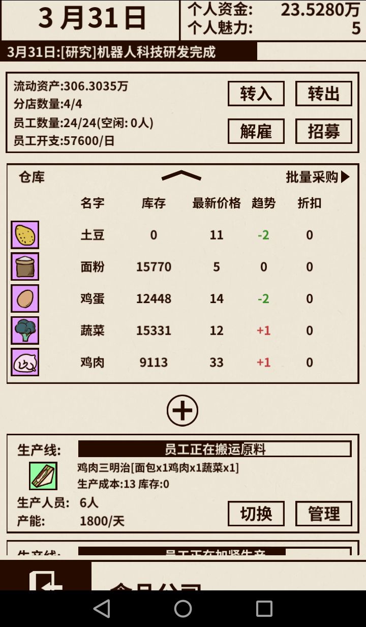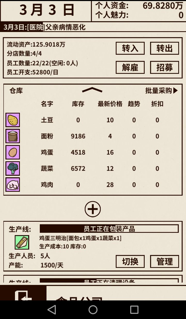 在这个2月份,如果看见3人甚至是4人分店,你可以选择卖掉2人的去购买它们,尽量招更多的人手提高生产效率