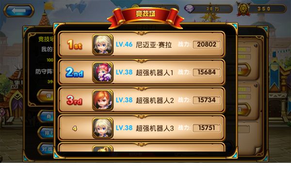 排行榜可以看到排名靠前的大神们哦!不要想着模仿阵容哦!这里只能看见主神级别守护是看不见的,想知道布阵?来努力提升自己战力和他们打一架吧!对战记录是你一路走来的辛酸日记,它证明了你一步步再强大。右面是随机给予你挑战的3名对手如果不满意可以点击下面的换一批。进入战斗的时候记得把握好时机放大招哦!这有可能就是制胜的关键!