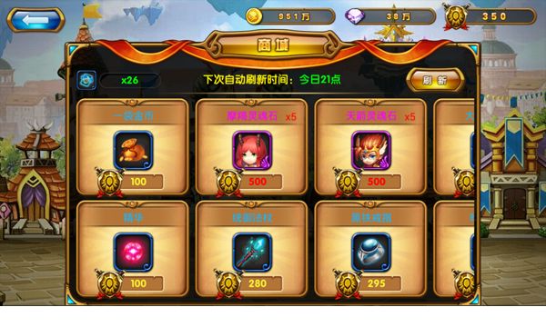 竞技场商店,在这里你只可以用赢得的荣誉来购买物品,这里也是最容易得到守护和主神灵魂石的地方,想让自己的队伍壮大吗?来这里就对了。