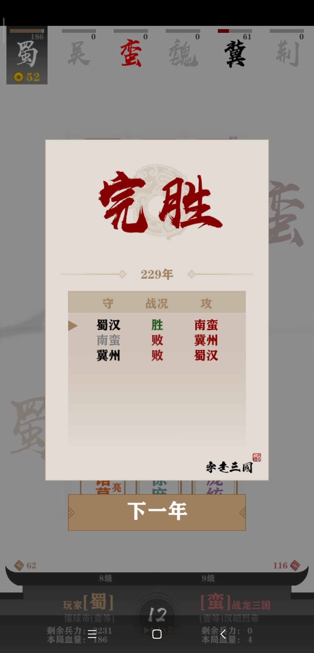 然后,由于三盾迟迟不能形成战力(盾力?),东吴首先被拖死。