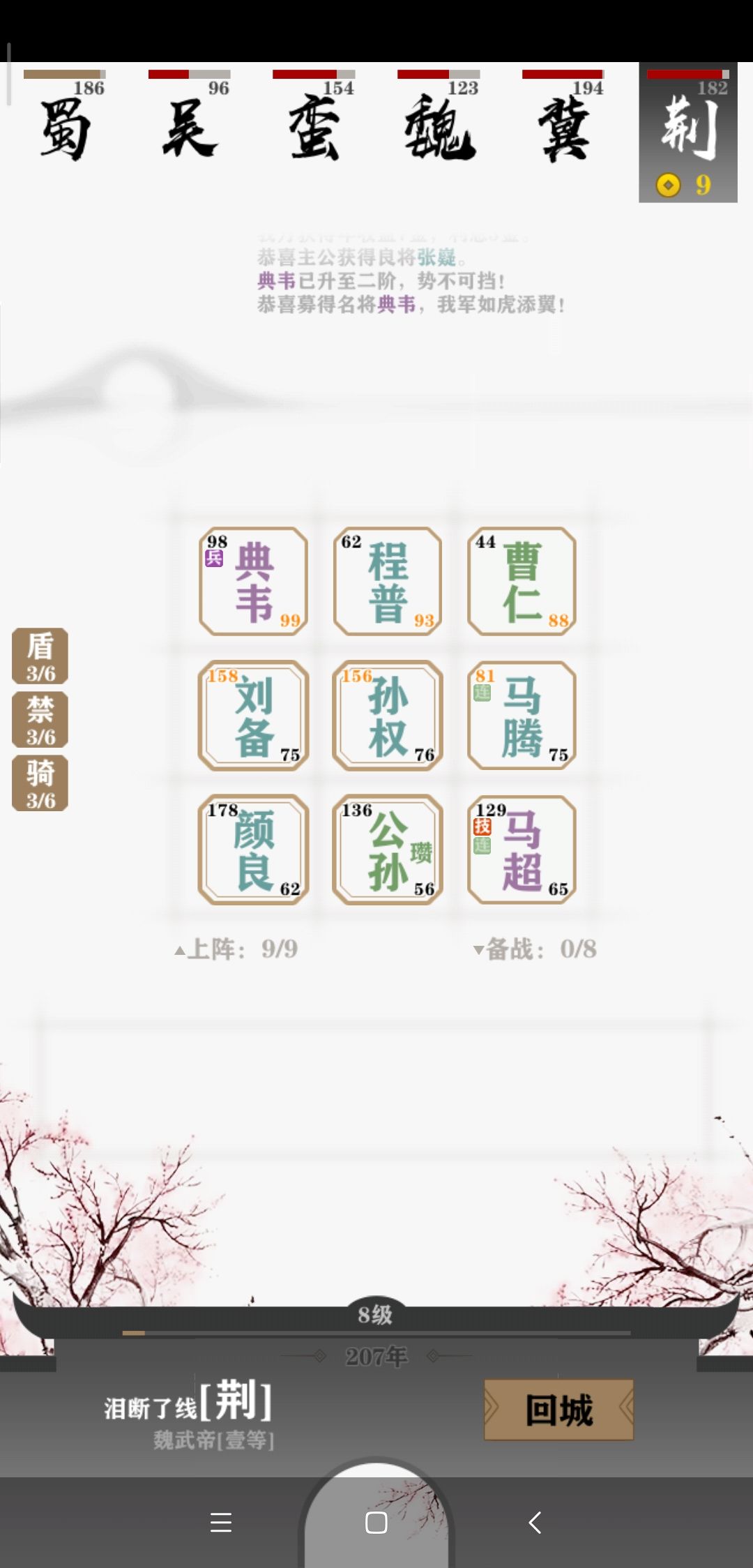 不久之后,三盾三禁三骑的荆州宣告退出天下争霸。