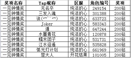 再次感谢大家对本次活动的参与支持!没有在获奖名单中的城主们也不用气馁,说不定下次获奖名单中就有你呢ヽ(✿゚▽゚)ノ