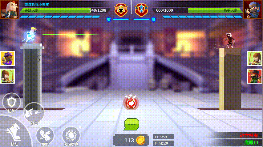 下图中弓术大师只要静待残血对手移动柱子到和自己柱子位置接近一致时点击换人,通过援助技收割对手。