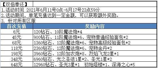 礼包内容:钻石*200; 抽奖券*5; 10级加农炮*2; 10级魔法炮*2