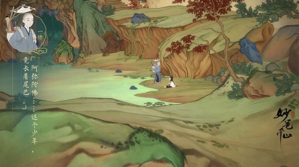 为了让玩家更好的沉浸体验青绿山水风格,并深度感受每幅画中的故事叙述,《绘真·妙笔千山》采用了游戏性轻度的解谜玩法,进而强调画面表现力和故事文本,确保剧情起伏更加流畅,让玩家体验到山水之间穿梭的快意。游戏中,主角一修和尚向当代画圣妙山求学画艺,路上巧遇少年墨言,两人一起找到了妙山。为学习画技,一修和尚和墨言进入妙山不同的画作破解画中谜题,领悟画技修为。