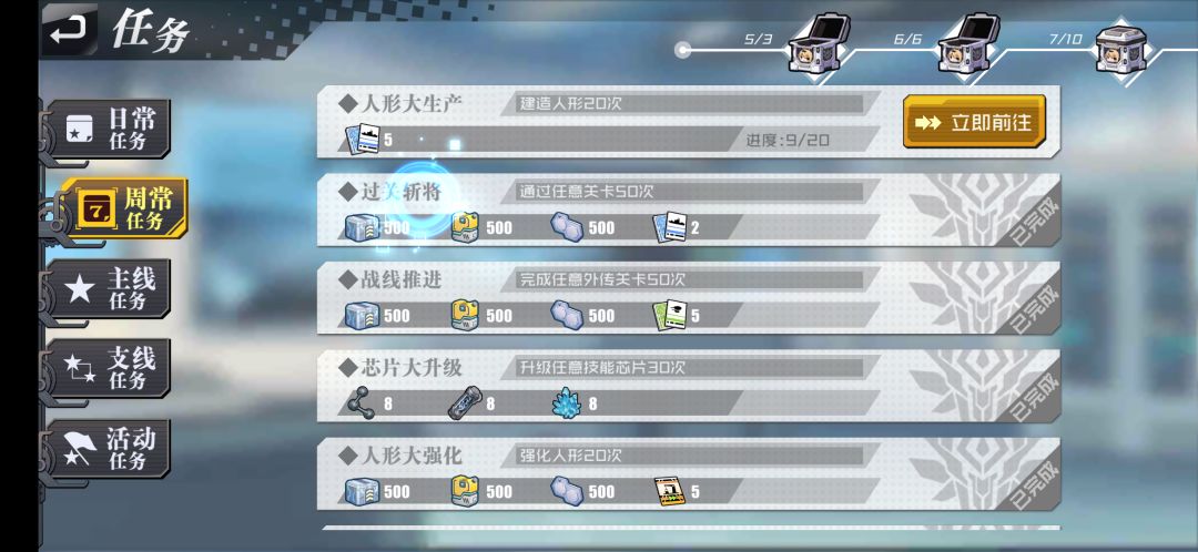这个是周任务完成了,上面的宝箱不显示完成。