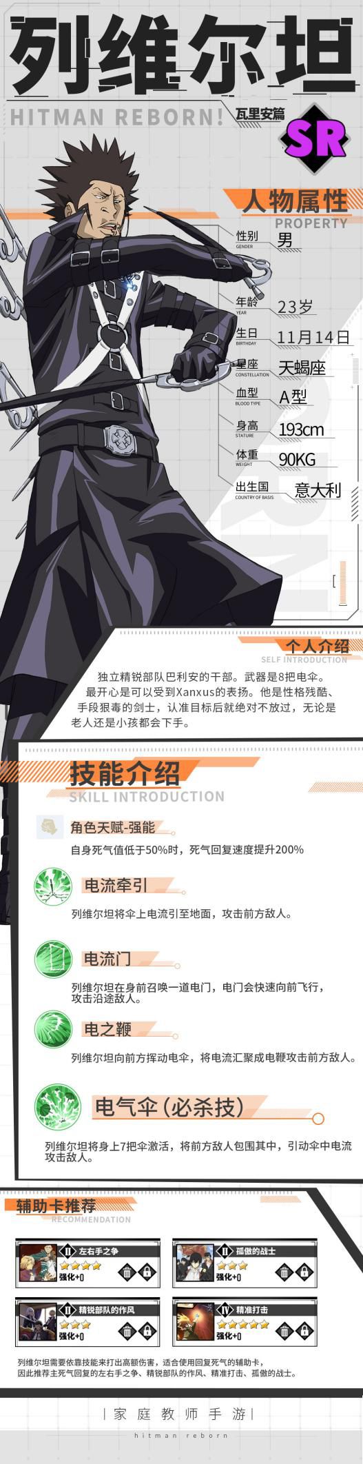 列维尔坦隶属于彭格列独立暗杀部队“瓦利亚”,非常崇拜XANXUS,是一名非常独特而有趣的存在,下面一起来看看他的相关设定以及他在《家庭教师》手游当中的表现吧!