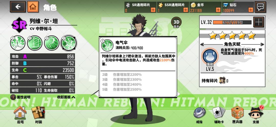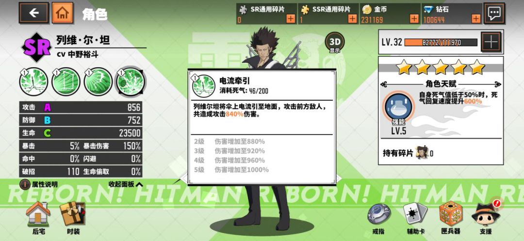 ※列维尔坦·十年后角色技能展示: