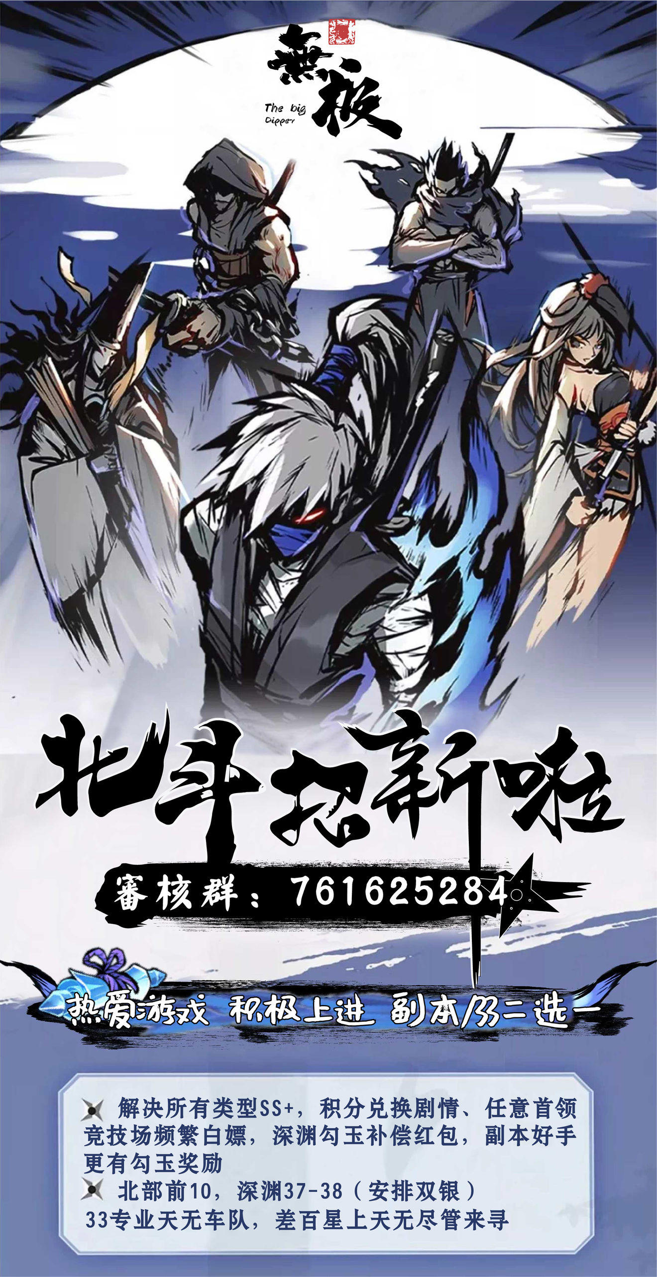 北斗☫无极 招人帖 可带双银、任意首领、任意竞技场(0202年1月招人帖)