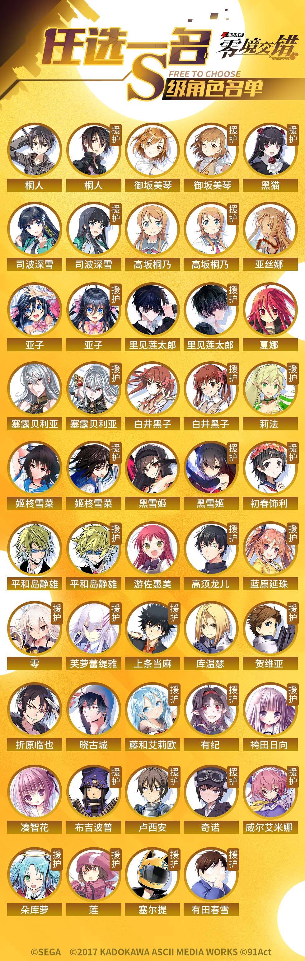 任务完成后,可选择获取的S级角色名单如下图(仅限当前版本的49名角色):