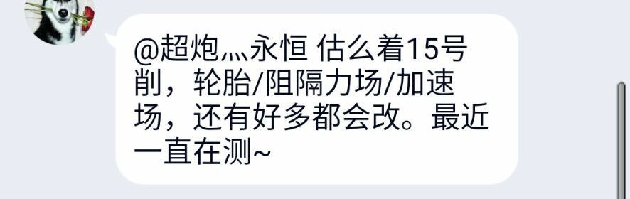 预告:近期游戏会出平衡性补丁,轮胎,立场,提速会调整,还有很多兵种也会调整。官方只透露削这三个,尖兵可能削,禁卫可能加强。(官方的意思)