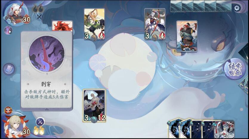 敌方酒吞童子和白狼是核心输出式神,海坊主作为辅助提供增益和恢复,山童在抵挡伤害的同时还有一定的输出能力,没有特殊的卡牌,只需要注意敌方牌手的被动技能即可。