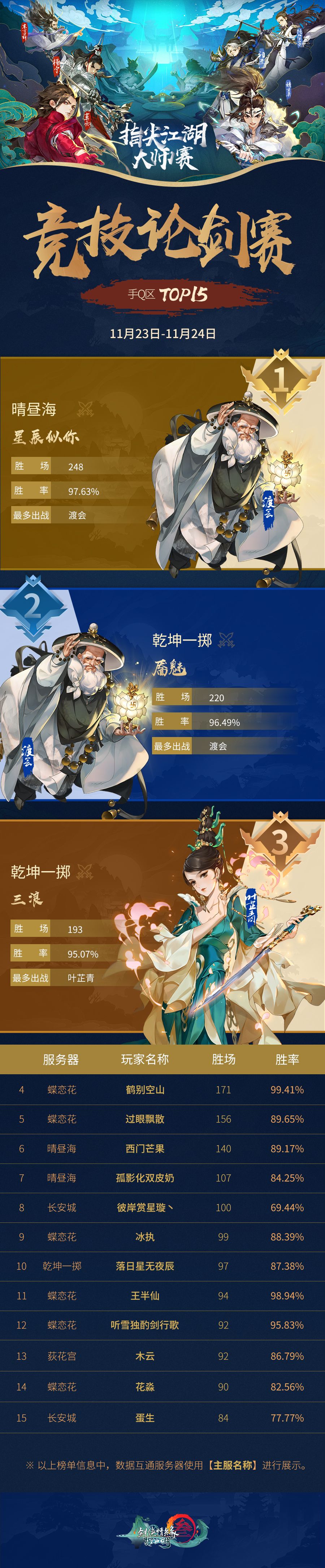 【指尖江湖大师赛】海选第二周榜单新鲜来袭,有你眼熟的少侠吗(//▽//)