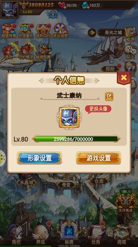 1.头像功能:点击左上角头像可以查看角色信息,并进行相关系统设置,同时可以更换喜欢的头像