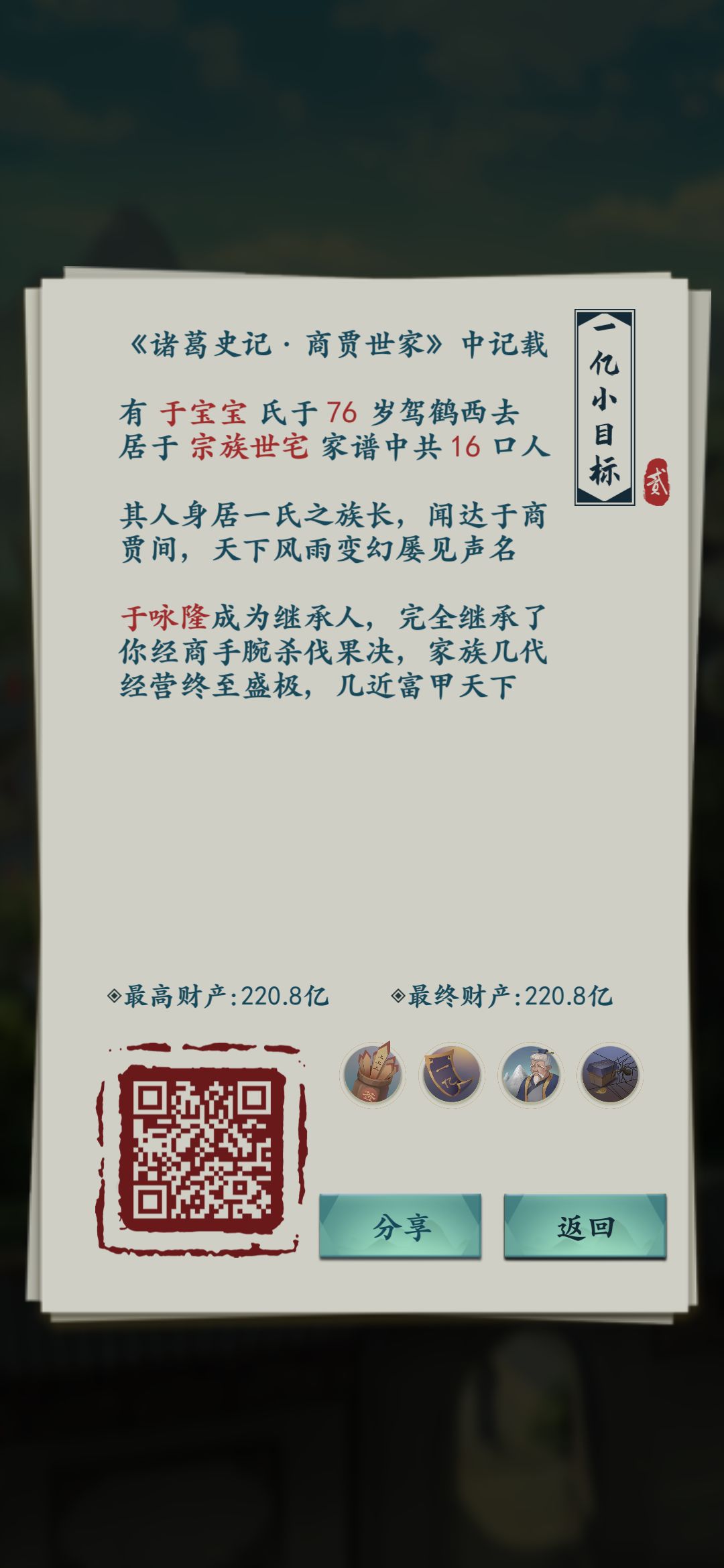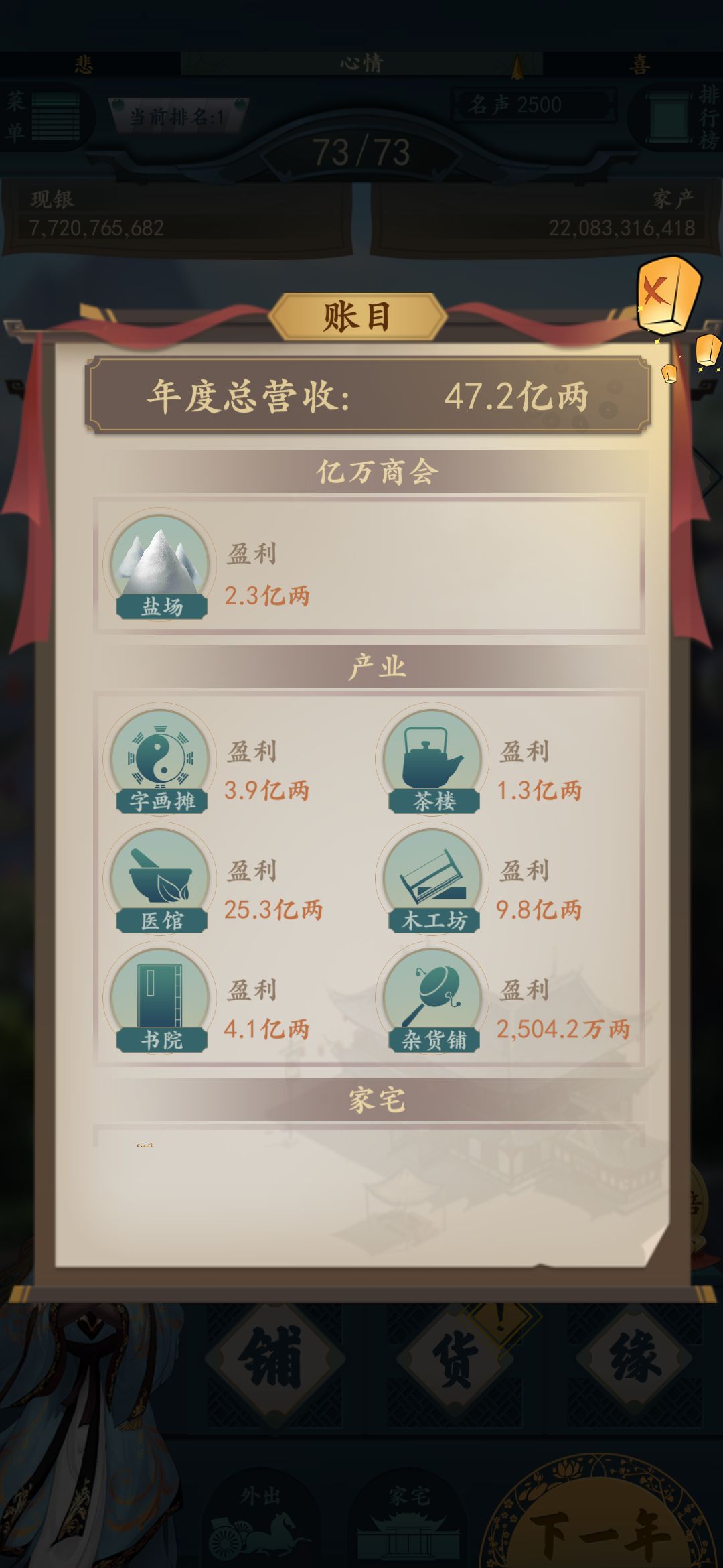 产业:截图里医馆是9级,医馆升级到10级可以赚几十亿。