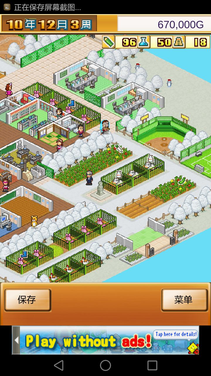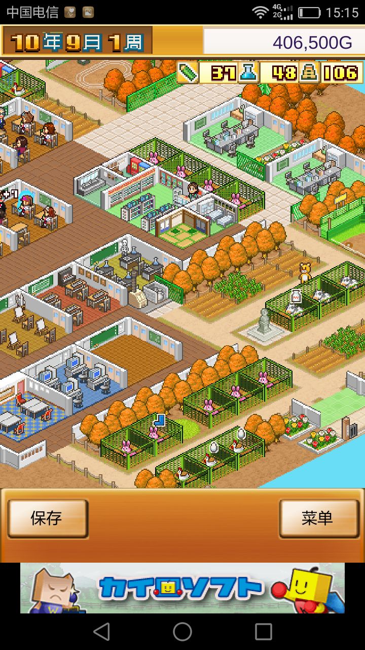 首先下载了kairo club把剩下的地图解锁了,然后选择了那个很多有钱人的地图,第一次玩的时候一直不懂扩充学院,所以学校只有三个课室。所以这一次我直接就弄了六个课室,经验就是第一周都是各种负资产,第四周就会有几十万上下,一有钱就马上课题研究,设施研究,农场鸡窝都是收入的主来源当然还有小卖部便利店和食堂这种帮补的收入。重点就是课题研究涨学费!!涨学费!!涨学费!!钱自然而然是多到没地方花的,很快把所有人气景点集齐了之后,优秀的老师就会自己找上门,不过都是一些奇怪的猴子熊啊还有鬼魂,盛在综合素质很高~