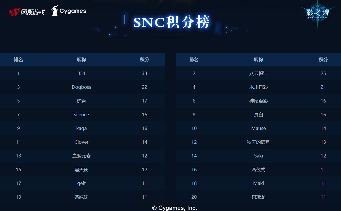 《影之诗》网易冠军争夺赛(Shadowverse NetEase Championship,简称SNC)作为国服最高级别的赛事、持续8个月的阶位积分赛赛程、紧张激烈的高手对战每月都在发生,《影之诗》SNC期待你的关注和参与!