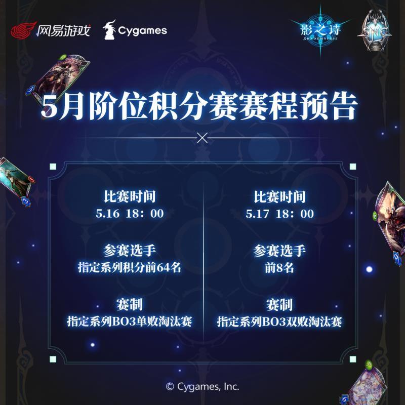 清和激战,逐鹿八强!《影之诗》SNC5月阶位积分赛明日打响!