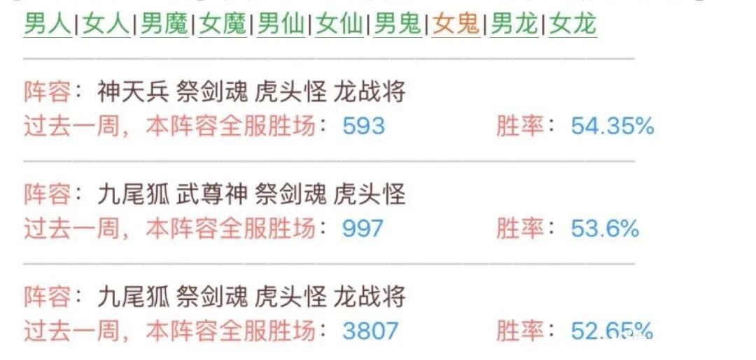 阵容:九尾狐、武尊神、祭剑魂、虎头怪